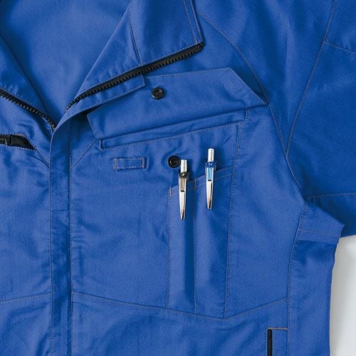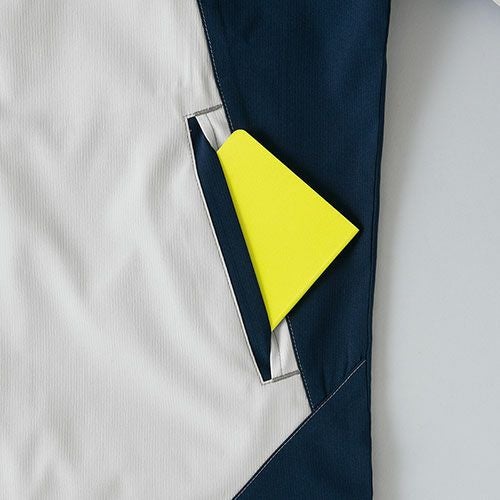 クラボウが共同開発した立体カッティング技術で、腕・肩部分に驚異的な動きやすさを提供。ポケットやペン差しも出し入れしやすいよう設計されております。