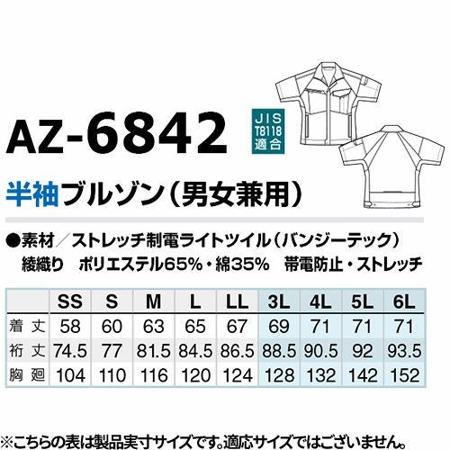 作業服 ブルゾン AITOZ アイトス 半袖ブルゾン(男女兼用) AZ-6842 作業着 春夏 会社 工場 店舗 運送 制服 カラー豊富 サイズ豊富 動きやすい 制電 UVカット 軽量 吸汗速乾 遮熱