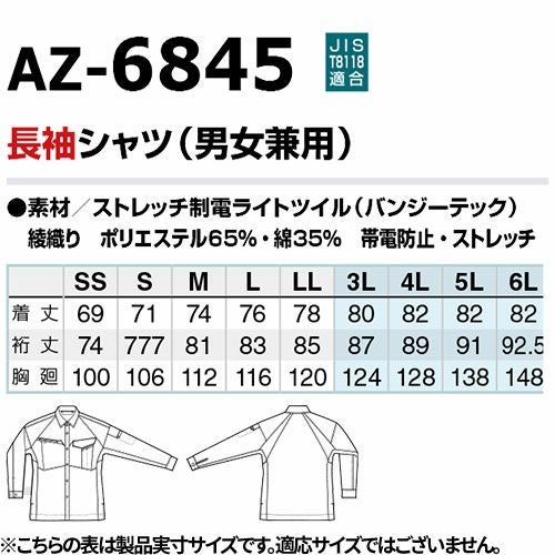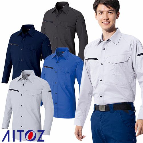 作業服 長袖シャツ AITOZ アイトス 長袖シャツ(男女兼用) AZ-6845 作業着 春夏 会社 工場 店舗 運送 制服 カラー豊富 サイズ豊富 動きやすい 制電 UVカット 軽量 吸汗速乾 遮熱
