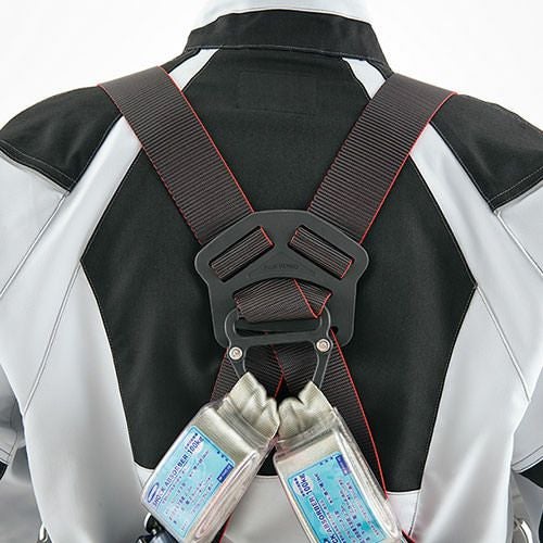フルハーネスのベルトから影響の受けにくい位置を想定し、腕部分に大型のファスナーポケット・ウエスト中央側に取り出し口のあるファスナーポケットを配置。またスペーサーパッドを取り付けることにより、フルハーネス着用時も襟元までダイレクトに風を感じることができ、快適に使用することができます。