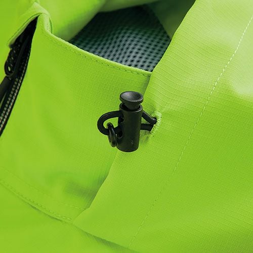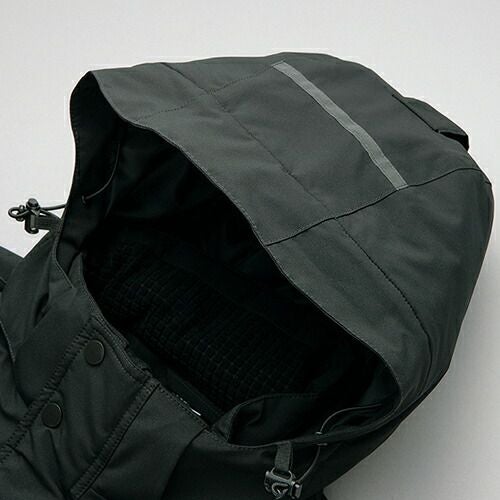 レフレクター(反射材)は、表面が濡れても輝度が変わることが少ない超高輝度マイクロプリズム反射素材(EN471認証品)を使用することにより、最前線で働く人の安全性を高めます。フードは立体設計でフィット感が高く、良好な視界が確保できます。