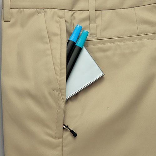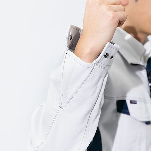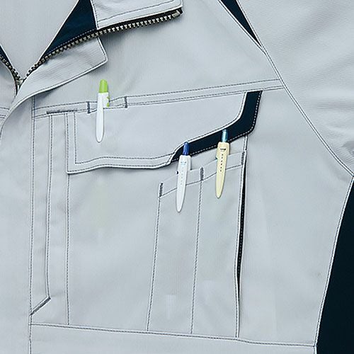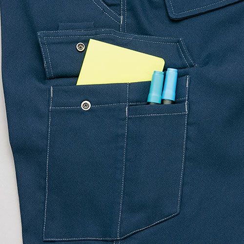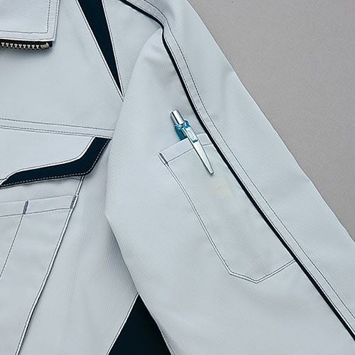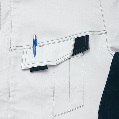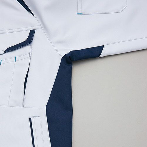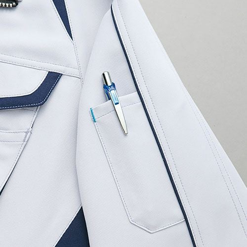 クラボウが共同開発した立体カッティング技術で、腕・肩部分に驚異的な動きやすさを提供。ポケットやペン差しも出し入れしやすいよう設計されております。