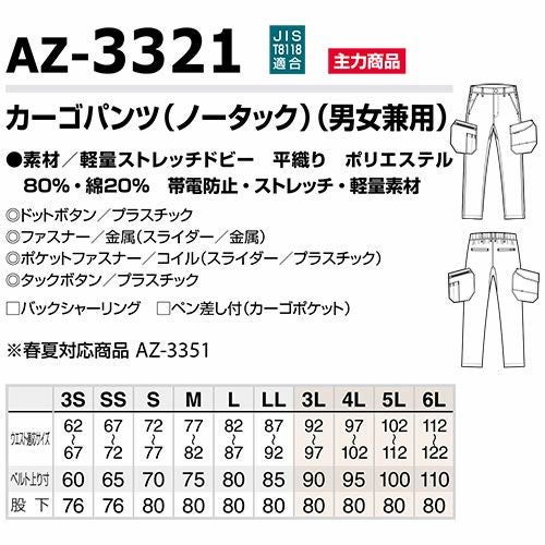 作業服 カーゴパンツ AITOZ アイトス 男女兼用 AZ-3321 作業着 通年 秋冬 帯電防止 動きやすい 軽量 ストレッチ おしゃれ かっこいい 人気 ズボン 作業ズボン 作業パンツ 作業 工事 土木 塗装 DIY di ボトムス パンツ ズボン メンズ レディース