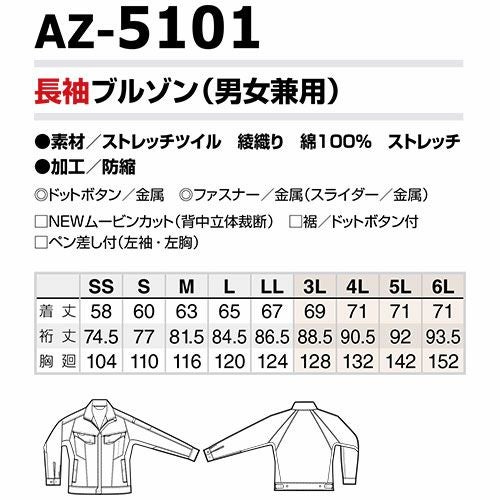 作業服 綿 100% ブルゾン 長袖 AZ-5101 作業着 ジャンパー アイトス AITOZ ストレッチ 動きやすい おしゃれ かっこいい ポケット 人気 作業 工場 外作業 ユニフォーム 仕事 4L 5L 6L 秋冬 メンズ レディース 男女兼用 防寒着 防寒ジャケット
