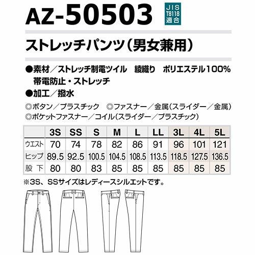 作業服 パンツ スラックス AITOZ アイトス ストレッチパンツ 男女兼用 AZ-50503 作業着 通年 秋冬 帯電防止 耐久撥水 ストレッチ 作業ズボン 作業パンツ ワークパンツ ズボン おしゃれ かっこいい オフィス ユニホーム メンズ レディース