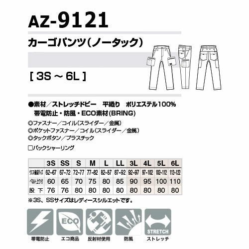 作業服 カーゴパンツ AITOZ アイトス ノータックカーゴパンツ AZ-9121 作業着 通年 秋冬 帯電防止 防風 ストレッチ 男女兼用 おしゃれ かっこいい 人気 ズボン 作業ズボン 作業パンツ 作業 工事 土木 塗装 メンズ レディース 男女兼用