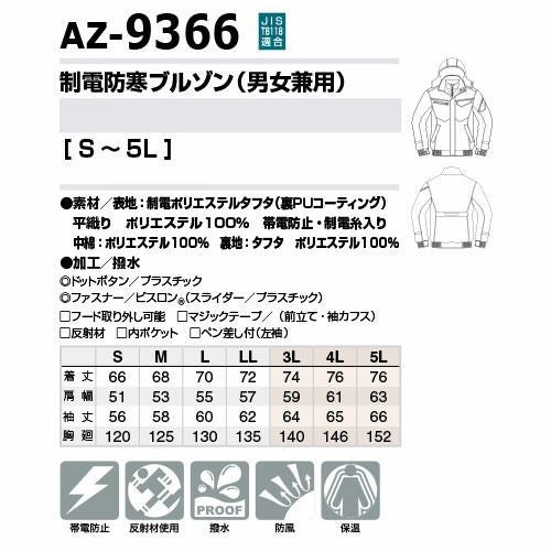 AITOZ アイトス 制電防寒ブルゾン 防寒ジャケット ドカジャン 保温 人気 安い ダウン 防寒着 防寒ジャンパー 上着 ブルゾン アウター おしゃれ 暖かい 秋冬 かっこいい 作業着 メンズ 寒さ対策 屋外作業 AZ-9366 男性用 帯電防止 撥水 防風 保温