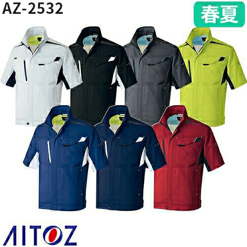 作業服 ブルゾン AITOZ アイトス ストレッチ半袖サマーブルゾン(男女兼用) AZ-2532 作業着 春夏 帯電防止 吸汗速乾 軽量 ストレッチ 男女兼用 ジャケット アウター 春夏 メンズ レディース ワークウェア
