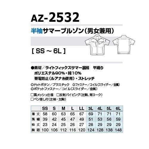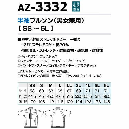 作業服 ブルゾン AITOZ アイトス 半袖サマーブルゾン(男女兼用) AZ-6832 作業着 春夏 帯電防止 反射材 ストレッチ 男女兼用 ジャケット アウター 春夏 メンズ レディース ワークウェア 帯電防止 動きやすい ストレッチ