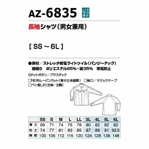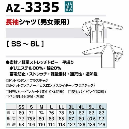 作業服 長袖シャツ AITOZ アイトス ムービンカット長袖シャツ 男女兼用 AZ-3335 作業着 春夏 帯電防止 動きやすい 遮熱 反射材使用 吸汗速乾 通気性 軽量 ストレッチ シャツ 長袖 春夏 メンズ レディース ワークウェア