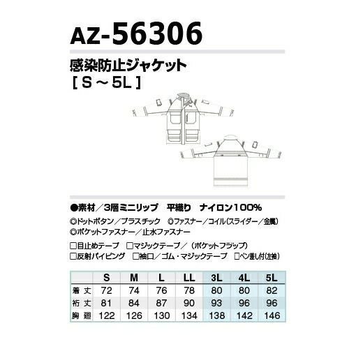 感染防止 医療 AITOZ アイトス DIAPLEX 感染防止ジャケット AZ-56306 セーフティ 反射材 透湿 撥水 防水 防風 ウイルス対策 感染防止 防水 撥水 防風