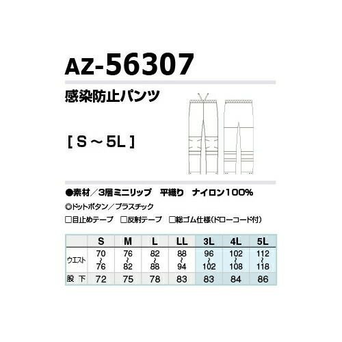 感染防止 医療 AITOZ アイトス DIAPLEX 感染防止パンツ AZ-56307 セーフティ 反射材 透湿 撥水 防水 防風 ウイルス対策 感染防止 防水 撥水 防風 クラス6