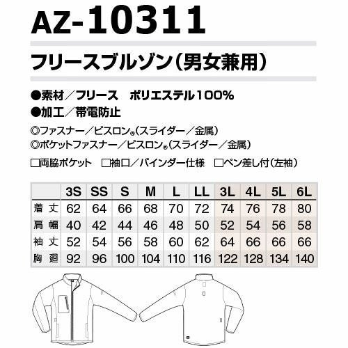 作業服 ブルゾン アイトス AITOZ フリースブルゾン AZ-10311 作業着 軽い 帯電防止 ストレッチ 温かい 保温 動きやすい 通年 秋冬 タルテックス TULTEX おしゃれ かっこいい 人気 ワーク企業 法人 作業 工場 外作業 大きいサイズ 3L 4L 5L 6L