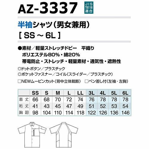 作業服 半袖シャツ AITOZ アイトス ムービンカット半袖シャツ(男女兼用) AZ-3337 作業着 春夏 帯電防止 動きやすい 遮熱 反射材使用 吸汗速乾 通気性 軽量 ストレッチ シャツ 半袖 春夏 メンズ レディース