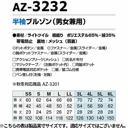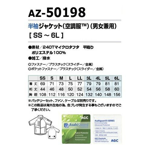 空調服 半袖(ファン無し・男女兼用) AITOZ アイトス 空調服 タルテックス TULTEX 50118型 半袖ジャケット メンズ レディース AZ-50198 作業着 作業服 半袖 上着 ブルゾン 春夏 涼しい 快適 猛暑対策 熱中症対策 上着 扇風機 工事 土木 土建 撥水 軽量 男女兼用