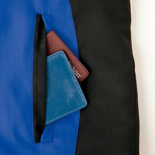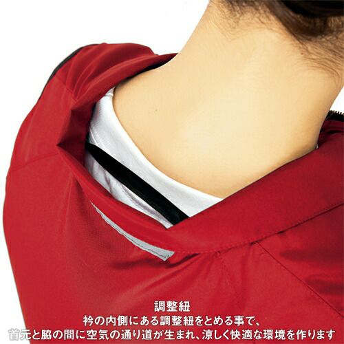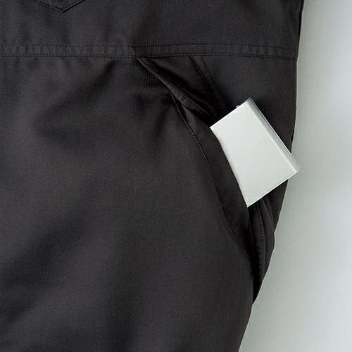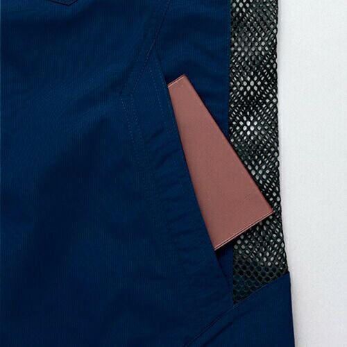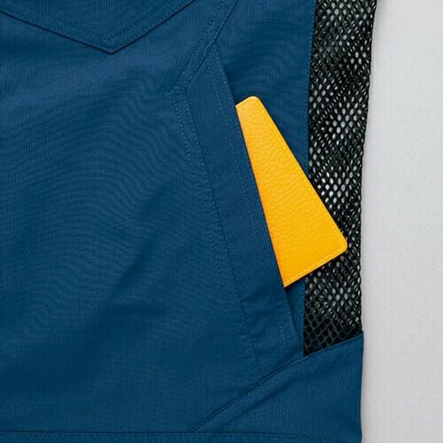 フルハーネスのベルトから影響の受けにくい位置を想定し、腕部分に大型のファスナーポケット・ウエスト中央側に取り出し口のあるファスナーポケットを配置。またスペーサーパッドを取り付けることにより、フルハーネス着用時も襟元までダイレクトに風を感じることができ、快適に使用することができます。