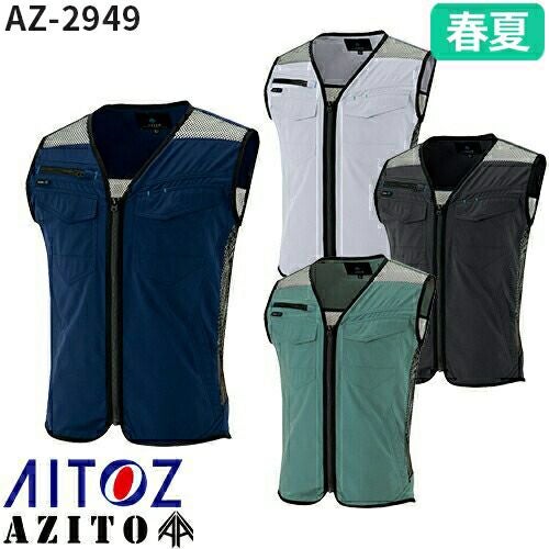 作業服 ベスト AITOZ アイトス ワークベスト(Vネック) AZ-2949 作業着 春夏 アウター 春夏 メンズ レディース 男女兼用 ワークウェア 吸汗 速乾 通気性 消臭 軽量 ストレッチ