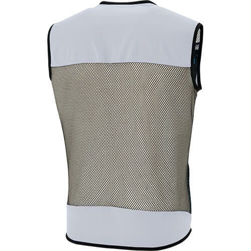 従来の空調服はフルハーネスを着用した場合、Dカン止めから肩ベルトのV字範囲と胸ベルトの廻りで圧迫されることで「空気の道」が閉ざされてしまい、襟元に抜ける空気が激減してしまっていました。スペーサーパッドと組み合わせることで、立体的な隙間「空気の道」を作る構造になっており、フルハーネス着用時も快適に使用することができます。