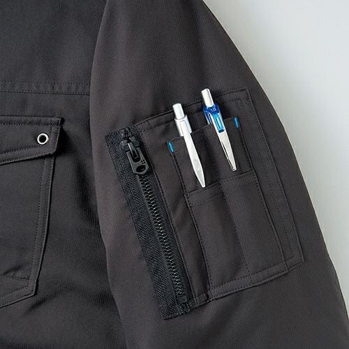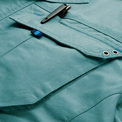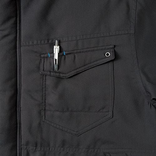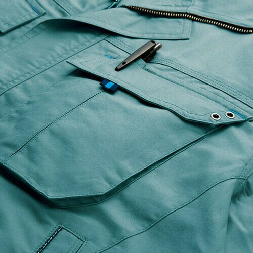 クラボウが共同開発した立体カッティング技術で、腕・肩部分に驚異的な動きやすさを提供。ポケットやペン差しも出し入れしやすいよう設計されております。
