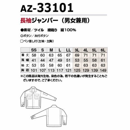 作業服 綿 100% ブルゾン 作業着 ジャケット 丈夫 ジャンパー 上着 長袖 通年 秋冬 アイトス AITOZ AZ-33101 おしゃれ かっこいい ユニフォーム 仕事 土木 工事 大きいサイズ 4L 5L 6L 秋冬 メンズ レディース 男女兼用 防寒着 防寒ジャケット