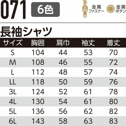 他の画像を見る 作業服 長袖シャツ Asahicho 旭蝶繊維 長袖シャツ 071 作業着 春夏作業着 作業服 長袖シャツ 春夏 特別価格 ¥ 3,641 税込 〜 特別価格 ¥ 税込 3本ステッチのタフさが自慢 耐久性に優れているから長持ち 詳細を見る お気に入りに登録する