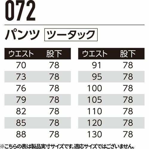 他の画像を見る 作業服 パンツ スラックス Asahicho 旭蝶繊維 パンツ(ツータック) 072 作業着 春夏作業着 作業服 スラックス 春夏 特別価格 ¥ 3,366 税込 〜 特別価格 ¥ 税込 3本ステッチのタフさが自慢 耐久性に優れているから長持ち 詳細を見る お気に入りに登録する