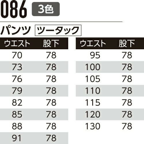 他の画像を見る 作業服 パンツ スラックス Asahicho 旭蝶繊維 パンツ(ツータック) 086 作業着 春夏作業着 作業服 スラックス 春夏 特別価格 ¥ 3,971 税込 〜 特別価格 ¥ 税込 スタイリッシュな個性派デザイン 耐久性に優れているから長持ち 詳細を見る お気に入りに登録する