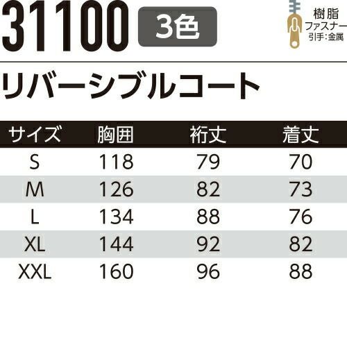 他の画像を見る 作業服 ジャンパー Asahicho 旭蝶繊維 リバーシブルコート 31100 作業着 通年 秋冬作業着 作業服 ジャンパー 長袖 おしゃれ かっこいい 企業 法人 ワーク 作業 ワークユニフォーム ワークウェア 長袖ブルゾン ユニフォーム 特別価格 ¥ 5,335 税込 〜 特別価格 ¥ 税込 リバーシブルで着こなせる2WAYリバーシブルコート 31500 軽防寒パンツとコーディネート可能 詳細を見る お気に入りに登録する