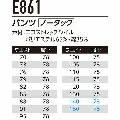 他の画像を見る 作業服 パンツ スラックス Asahicho 旭蝶繊維 ストレッチパンツ(ノータック) E8605 作業着 春夏 エコマーク認定商品 ストレッチ ウエスト140cm対応 帯電防止 特別価格 ¥ 3,153 税込 〜 特別価格 ¥ 税込 豊富なサイズ展開と動きにフィットするストレッチワークウェア スリムシルエットでスタイリッシュに決まる 詳細を見る お気に入りに登録する