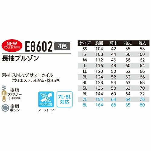 他の画像を見る 作業服 ブルゾン Asahicho 旭蝶繊維 ストレッチ長袖ブルゾン E8602 作業着 春夏 エコマーク認定商品 ストレッチ 7L 8L対応 帯電防止 特別価格 ¥ 4,169 税込 〜 特別価格 ¥ 税込 豊富なサイズ展開と動きにフィットするストレッチワークウェア 詳細を見る お気に入りに登録する