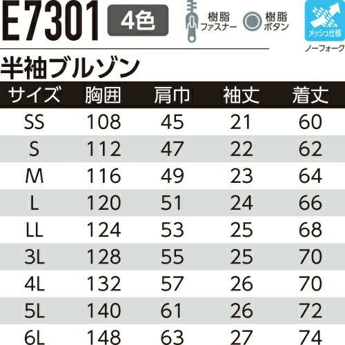 他の画像を見る 作業服 ブルゾン Asahicho 旭蝶繊維 半袖ブルゾン E7301 作業着 春夏作業着 作業服 ブルゾン 春夏 特別価格 ¥ 5,445 税込 〜 特別価格 ¥ 税込 機能満載!JIS帯電防止ワークウェアの決定版!! ヨコのびストレッチ・JIS帯電防止・防汚加工、耐久性と快適性を兼ね備えたワークウェア 詳細を見る お気に入りに登録する