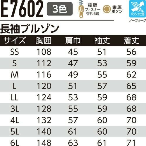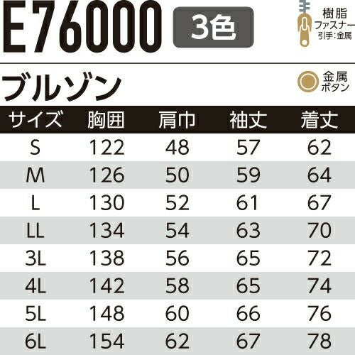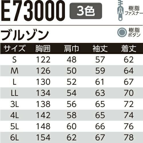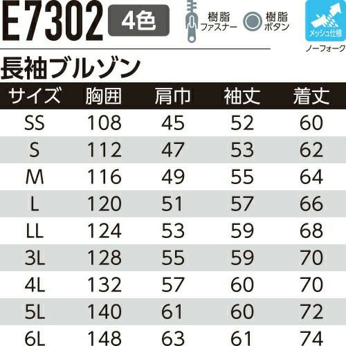 他の画像を見る 作業服 ブルゾン Asahicho 旭蝶繊維 長袖ブルゾン E7302 作業着 春夏作業着 作業服 ブルゾン 春夏 特別価格 ¥ 5,995 税込 〜 特別価格 ¥ 税込 機能満載!JIS帯電防止ワークウェアの決定版!! ヨコのびストレッチ・JIS帯電防止・防汚加工、耐久性と快適性を兼ね備えたワークウェア 詳細を見る お気に入りに登録する