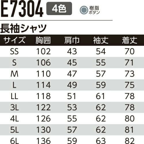 他の画像を見る 作業服 長袖シャツ Asahicho 旭蝶繊維 長袖シャツ E7304 作業着 春夏作業着 作業服 長袖シャツ 春夏 特別価格 ¥ 4,939 税込 〜 特別価格 ¥ 税込 機能満載!JIS帯電防止ワークウェアの決定版!! ヨコのびストレッチ・JIS帯電防止・防汚加工、耐久性と快適性を兼ね備えたワークウェア 詳細を見る お気に入りに登録する