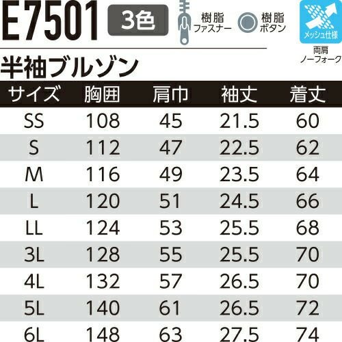 他の画像を見る 作業服 ブルゾン Asahicho 旭蝶繊維 半袖ブルゾン E7601 作業着 春夏作業着 作業服 ブルゾン 春夏 特別価格 ¥ 5,797 税込 〜 特別価格 ¥ 税込 ムレ知らずでひんやり快適!清涼感で作業効率UP!真夏の現場も乗り切るワークウェア!! 詳細を見る お気に入りに登録する