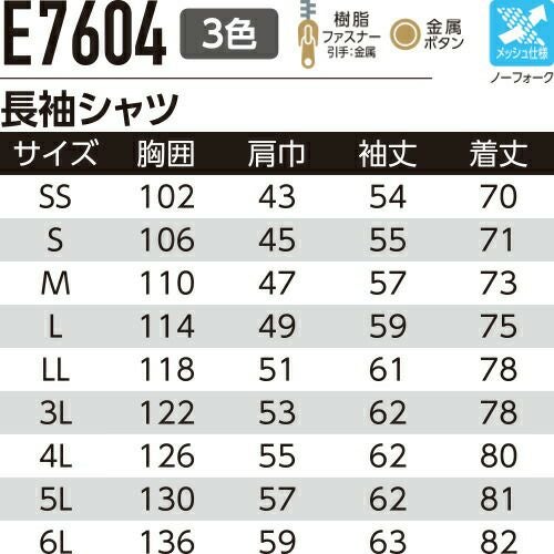 他の画像を見る 作業服 長袖シャツ Asahicho 旭蝶繊維 長袖シャツ E7604 作業着 春夏作業着 作業服 長袖シャツ 春夏 特別価格 ¥ 5,181 税込 〜 特別価格 ¥ 税込 ムレ知らずでひんやり快適!清涼感で作業効率UP!真夏の現場も乗り切るワークウェア!! 詳細を見る お気に入りに登録する