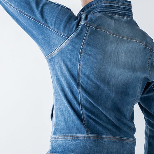 伸縮性能を強化したハイパワー糸使用ストレッチモデル 高機能のストレッチ糸を使用し、歴代USDストレッチデニムシリーズの中で最高レベルの伸縮率を実現。右胸に配置された大容量大型ファスナーポケットで収納性が大幅にアップ。アーム廻りも程よいフィット感のすっきりシルエットに仕上げてあり、より洗練されたスタイリッシュシルエットへ。