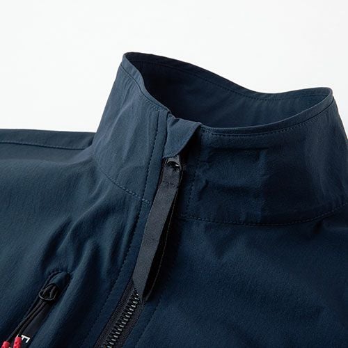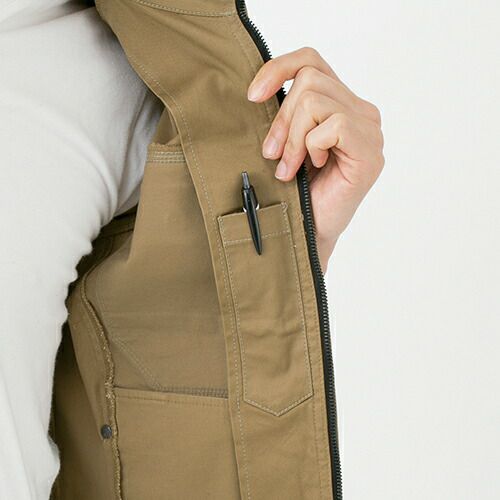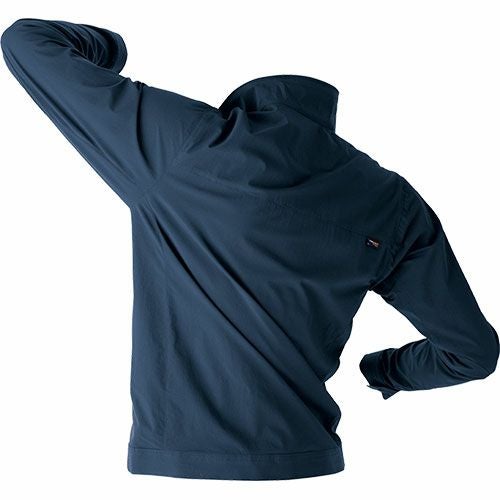 綿を多く配合することにより肌触りがよく、適度なシャリ感もあり、汗を効率良く吸って発散してくれれます。消臭テープ内蔵、手首にフィットするリブ仕様、肩にペン差しポケット、オールシーズン対応の便利な一着となっています。