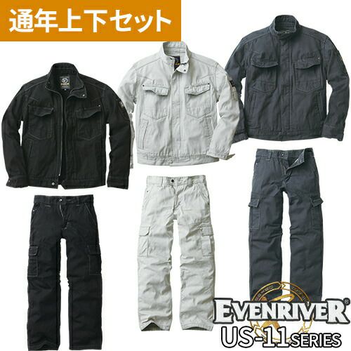 作業服 上下セット 秋冬 ストレッチ 作業着 イーブンリバー EVENRIVER US-1107 US-1102 パンツ ジャケット メンズ レディース AW 長袖 カーゴパンツ ジャンパー ズボン 綿100 人気 おしゃれ かっこいい ユニフォーム