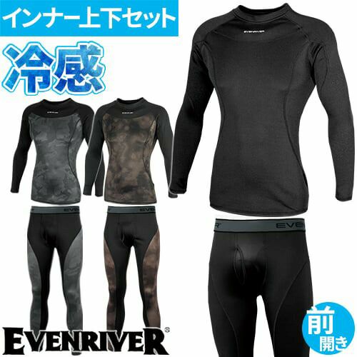 冷感インナー 上下セット メンズ 作業服 イーブンリバー アイスコンプレッションネオ 接触冷感 インナー 夏用インナー 長袖 加圧 冷感 アンダーシャツ ロングパンツ 前開き 肌着 下着 防臭 抗菌 吸汗 速乾 ストレッチ 作業着 GTX06 GTX03