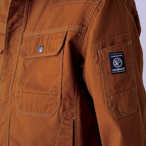 難燃加工シリーズ「FLAME REGISTANT TEX」から綿100%のワークウェアが登場 しっかりとした厚地の綿100%生地に難燃加工を施し、接炎の可能性がある現場での着用に最適。ややゆったりとしたシルエットで動きやすく、スタイリッシュなデザインが特徴。ハードな作業環境にも破れにくい、丈夫で安心の一着。収納性も抜群。