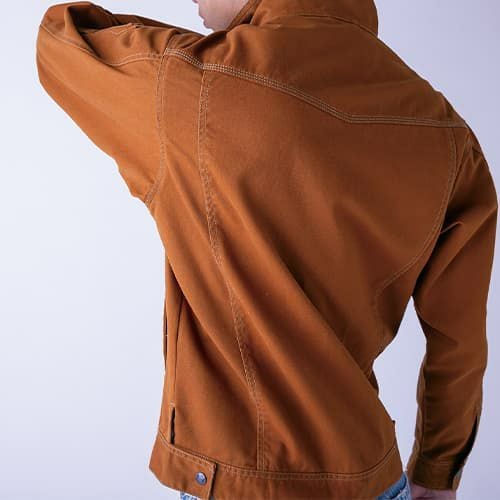 「良く伸びる」を上回る「しっかり戻る」ストレッチ素材で作られた作業着。生地がしっかり「戻る」ことで着用後の型崩れを防止し、新品時のスタイリッシュなシルエットを長時間キープできるのです。驚異の伸長率「40%以上」を実現した事で、身体への負担が軽減され、長時間着用時の疲労感軽減に差が出ます。