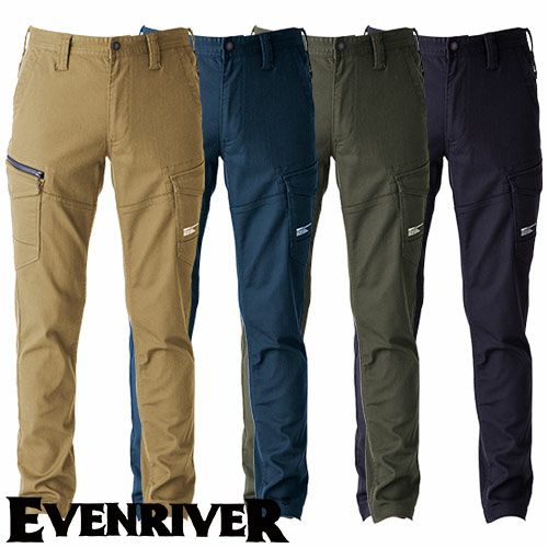 作業服 カーゴパンツ イーブンリバー EVENRIVER ソリッドストレッチカーゴ US1602 作業着 通年 秋冬 アウトドア タウンユース シンプル カッコいい スッキリシルエット
