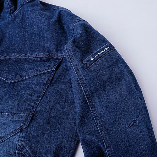 イーブンリバーでは、デニムを中心に商品が展開されていますが、ストレッチウェアでは難しかった良く伸びて良く戻る卓越したシルエットキープを実現しています。ここでは、イーブンリバーの作業着をご紹介したいと思います。