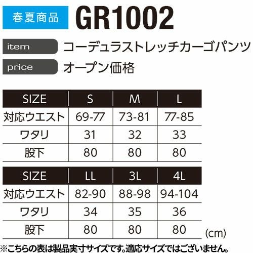 コーデュラ ストレッチ カーゴパンツ 作業服 作業着 作業ズボン パンツ ズボン ボトムス イーブンリバー EVENRIVER GR1002 春夏 伸縮性 速乾 スリム ナイロン おしゃれ オシャレ かっこいい