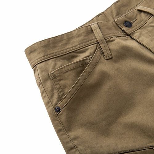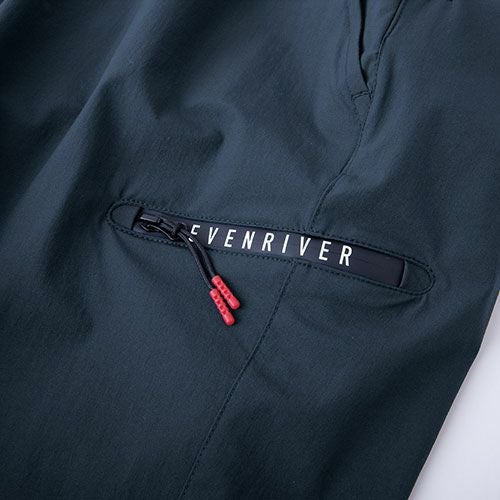 ヨーロッパ的スタイリッシュなスリムスタイルにストレッチ性をプラス! イーブンリバーの持ち味である「季節を選ばず年間通して着用できる適度な厚み」を今作も採用している。素材は綿を多く含む高密度のミニヘリンボン織りで、様々なハードワークに十分耐えうる強度である。さらにストレッチ性を持たせるために伸縮性のある糸を生地に織り込んでおり、スタイリッシュな細身ながらつっぱりにくい。特にカーゴパンツは独自の3Dカッティング技術による動きやすさと機能性にポイントを置いており、無駄な装飾を極力削ぎ落したミニマルなワークウェア・ルックへと進化している。