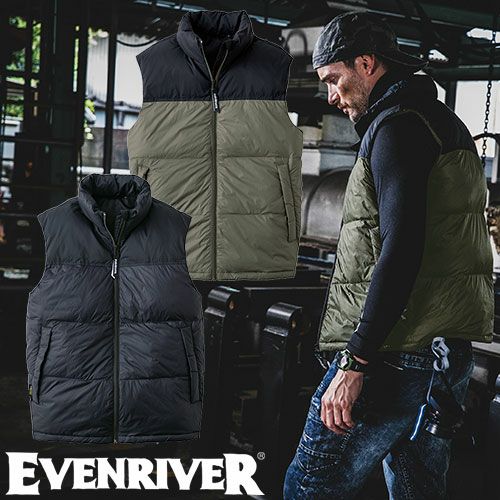 イーブンリバー EVENRIVER ファイバーダウンベスト 防寒ベスト チョッキ 防寒 インナー アウター 作業用ベスト 保温 人気 安い 防寒着 おしゃれ 暖かい 秋冬用 最強 かっこいい 作業着 おすすめ ワーク マン メンズ 防寒ウェア 屋内作業 屋外作業 あったか 防寒グッズ R125