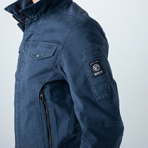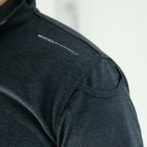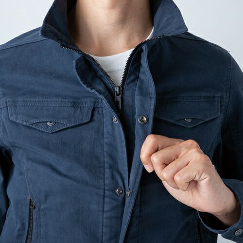 綿を多く配合することにより肌触りがよく、適度なシャリ感もあり、汗を効率良く吸って発散してくれれます。消臭テープ内蔵、手首にフィットするリブ仕様、肩にペン差しポケット、オールシーズン対応の便利な一着となっています。