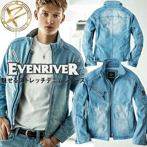 作業服 ストレッチ デニム イーブンリバー EVENRIVER ストレッチブラスト ブルゾン USD307 作業着 通年 秋冬 おしゃれ かっこいい 人気 上着 デニム作業服 デニム作業着 ジャケット ワークウェア 仕事 土木 工事 現場