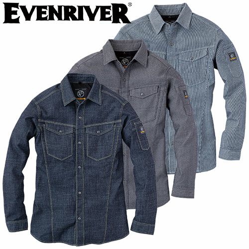 作業服 長袖シャツ イーブンリバー EVENRIVER スタンダードシャツ SR-4006、SR-4006D 作業着 通年 秋冬 綿100 丈夫な生地 耐久性 長持ち おしゃれ かっこいい 人気