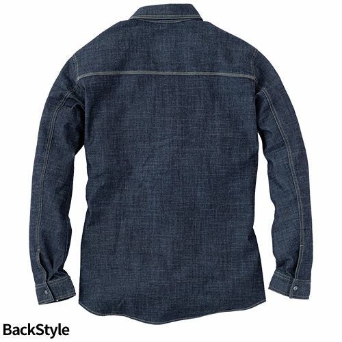 肌触りがよい綿100%の影武者 刺し子長袖シャツ 肩部分に刺子織りの縫製がほどこされており、摩擦に対して生地が裂けにくい補強になっています。鳶職では著しく消耗する肩部分に、安心のガード!